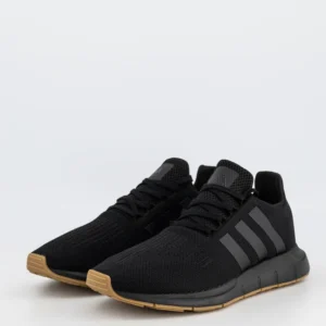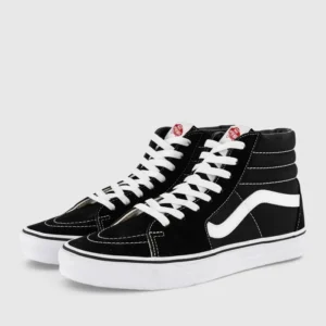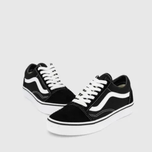 A shoe store with a variety of footwear on display, including sandals, formal shoes, and casual shoes. The shelves are neatly organized, and there is a section with handbags. The store has white shelving units and bright overhead lighting, with a red accent on the back wall displaying branded signage.